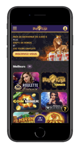 Si vous envisagez de jouer pour de l’argent réel depuis votre téléphone, choisissez entre la version adaptative dans le navigateur ou l’ application de casino Play Regal . Les deux formats permettent d’accéder à la salle de jeux à partir d’un smartphone Android ou iOS, vous permettant de choisir parmi une liste complète de jeux de hasard ou de bonus. Dans le coin supérieur gauche, il y a un menu pratique pour trouver des sections importantes qui vous aideront à naviguer rapidement dans la version mobile. Si nous considérons l’ application Play Regal , seuls les propriétaires de téléphones et de tablettes Android peuvent la télécharger. Cependant, un logiciel spécial se distingue par la meilleure qualité graphique dans les jeux, l’absence de retards lors du chargement des catégories, mais il nécessite une connexion Internet stable et rapide. Après avoir installé Play Regal , vous pourrez obtenir un accès complet au fichier de cartes de jeux à partir du raccourci sur l’écran d’accueil. L’application vous permettra de commencer à jouer instantanément et de ne pas manquer de nouveaux bonus en configurant des notifications.